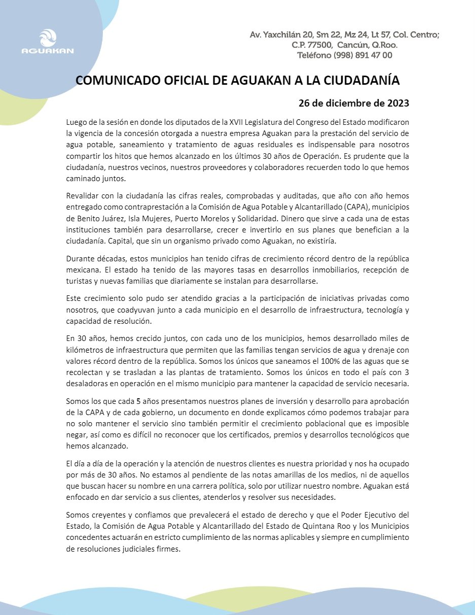 Continue readingAprueba Congreso local retirar concesión a Aguakan; finalizará el 31 de diciembre, pero podría seguir operando con resoluciones legales