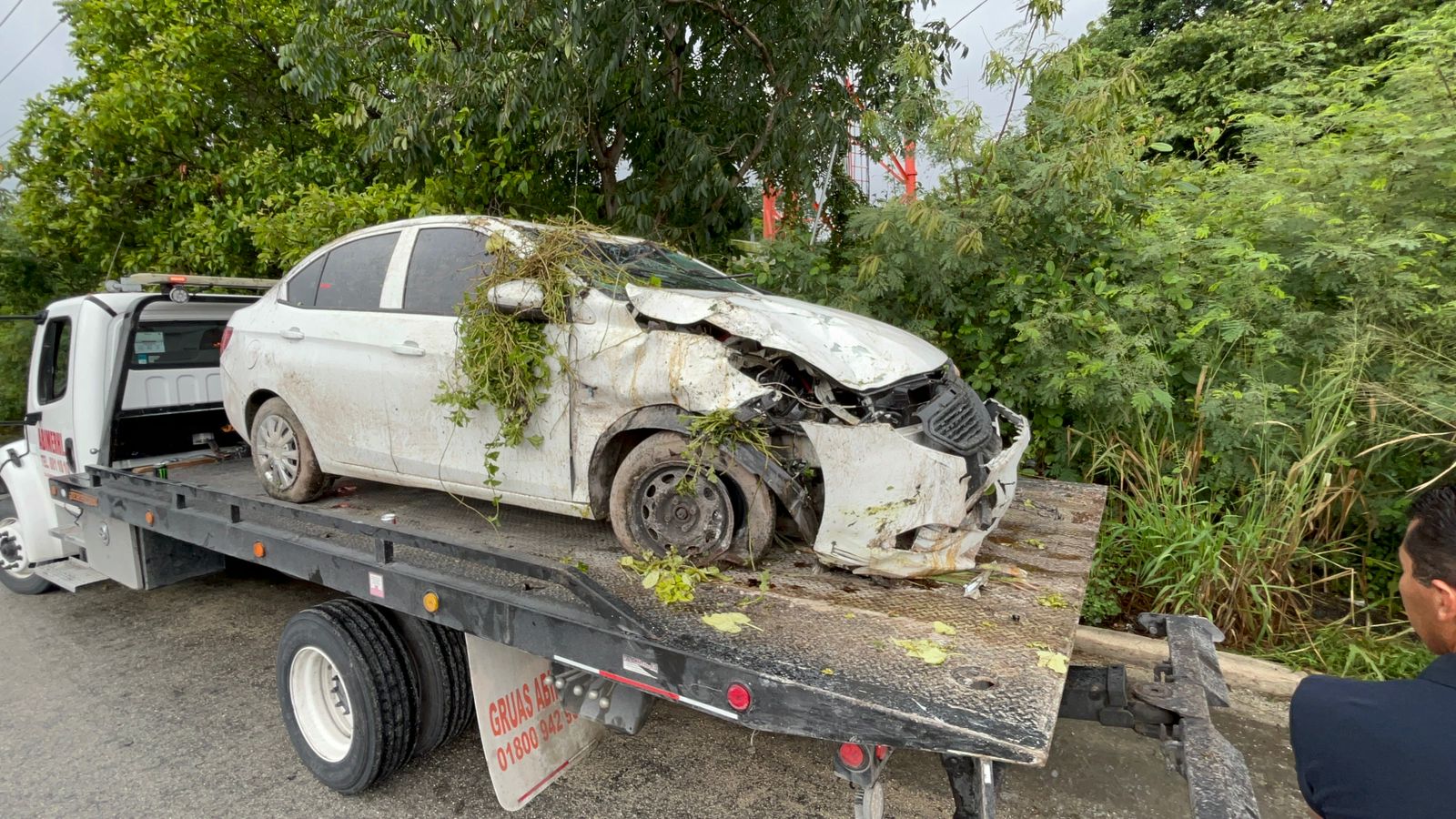 Tras el impacto, el vehículo terminó montándose al camellón central para luego volcarse en medio de la carretera federal.