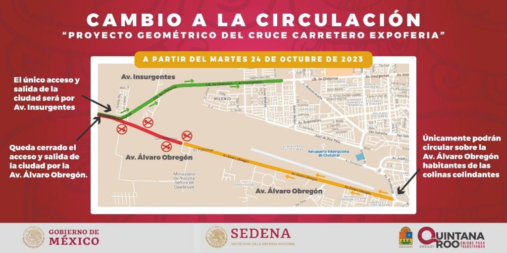 Con esta medida, la única vía de entrada y salida de Chetumal hacia el norte será la Avenida Insurgentes, lo que podría generar congestionamientos y retrasos en el tráfico. Se recomienda a los conductores que salgan con anticipación y que eviten las horas pico.