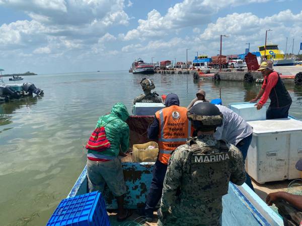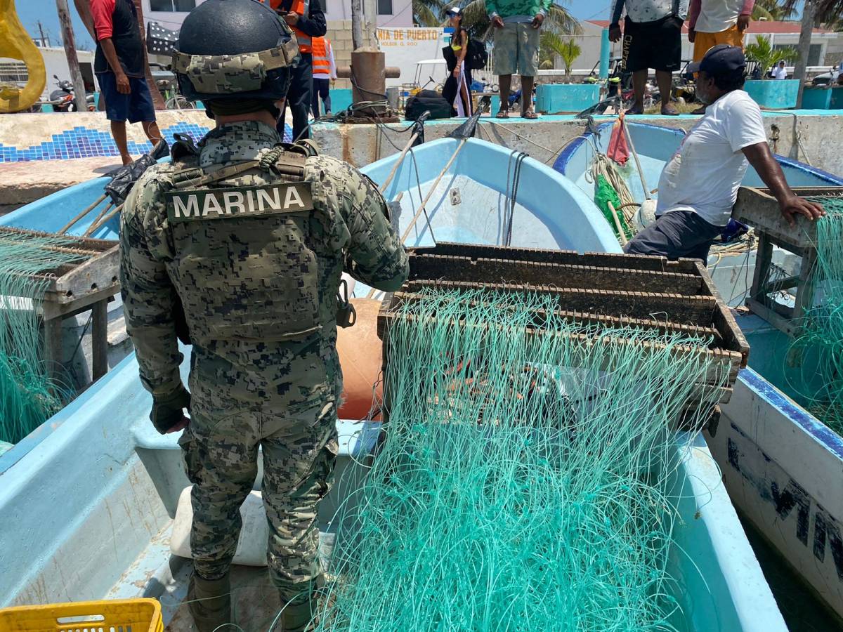 Lázaro Cárdenas, Quintana Roo – Personal de la Secretaría de Marina y de la Comisión Nacional de Acuacultura y Pesca realizaron el decomiso preventivo de varias embarcaciones menores así como artes de pesca y producto marino en este municipio, luego de que las tripulaciones no pudieran acreditar su legal origen.