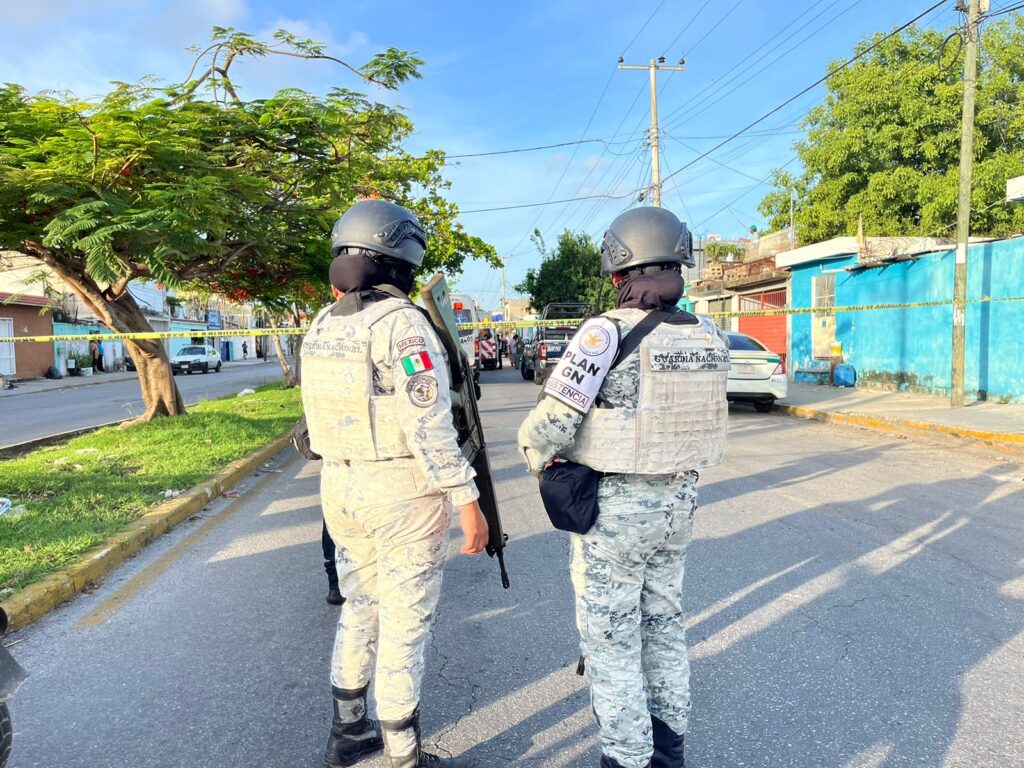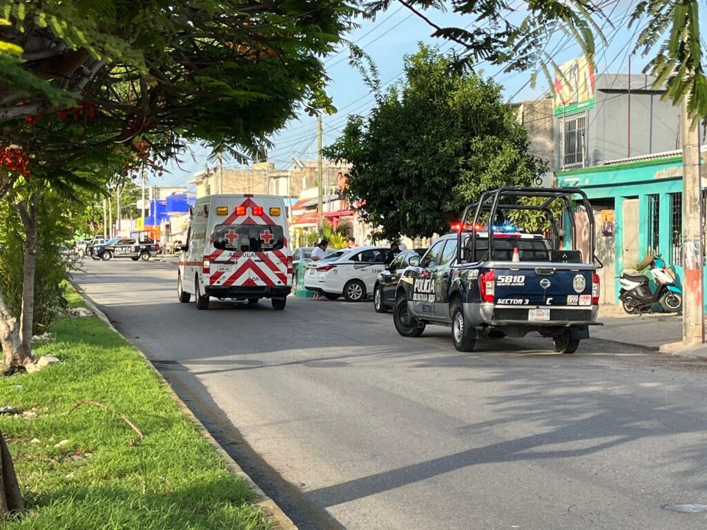 Cancún.- Sujetos en una motocicleta se emparejaron con un taxi y dispararon varias veces en contra de quienes iban a bordo, dejando a dos personas lesionadas, en la esquina de la “Ruta 5” con avenida Lombardo Toledano.
