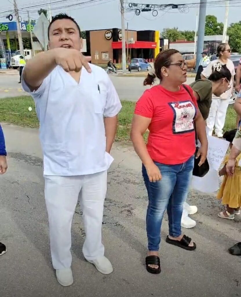 Chetumal.- Esta mañana, trabajadores y derechohabientes del ISSSTE en Chetumal bloquearon la avenida Insurgentes para denunciar graves deficiencias en la clínica, incluyendo la falta de energía eléctrica en las áreas de hemodiálisis y diálisis.