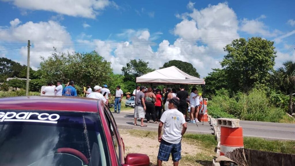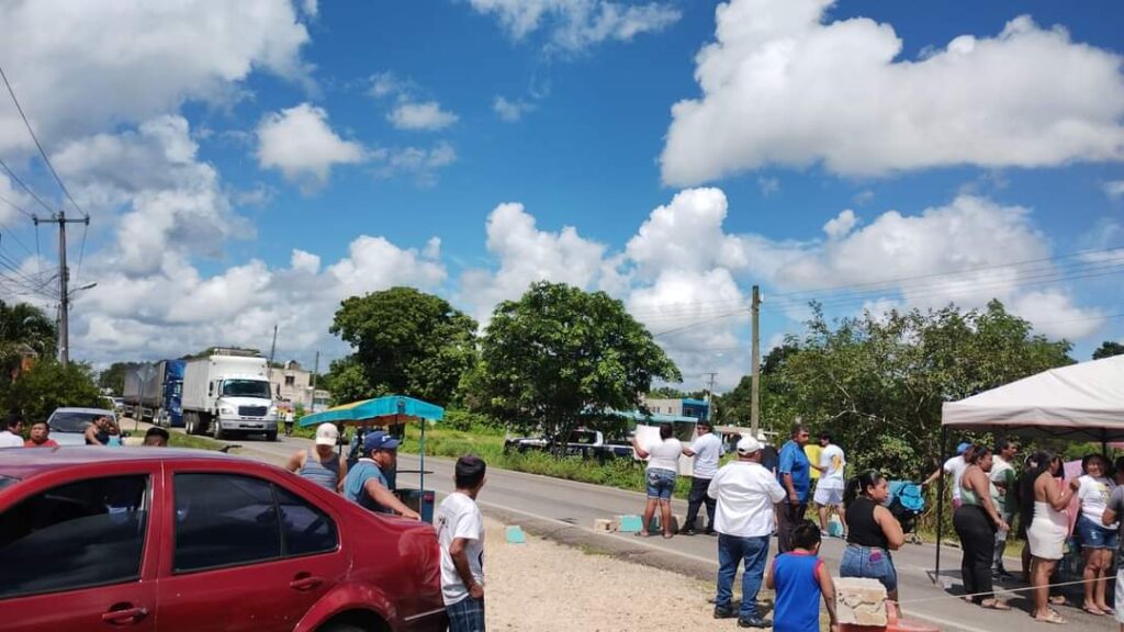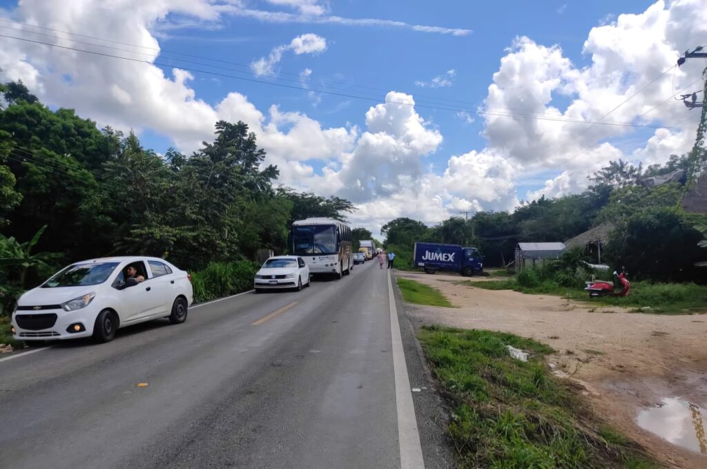 Kantunilkín.- La carretera Cancún a Valladolid, a la altura de Ignacio Zaragoza (Km 80), fue bloqueada por habitantes de la alcaldía de Ignacio Zaragoza en protesta por la detención de un joven de la comunidad.