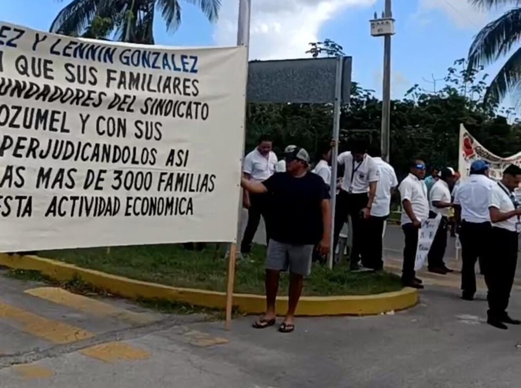 Los inconformes se congregaron sobre el bulevar Aeropuerto con 65 avenida, donde colocaron algunas barreras y mantas para impedir el paso de vehículos que prestan el servicio de transporte del aeropuerto hacia los diversos hoteles de la isla.