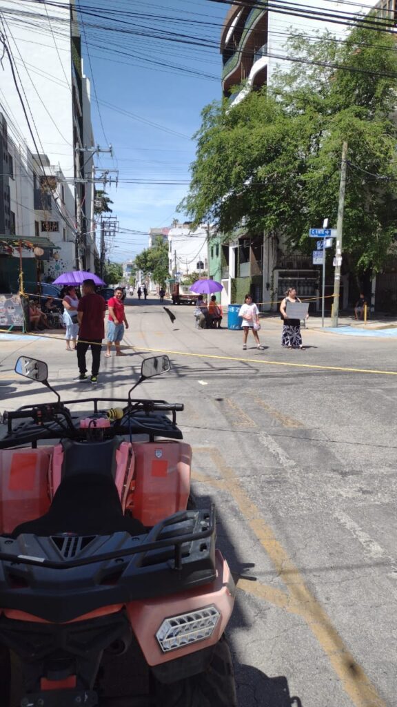 Los manifestantes colocaron botes azul y cuerdas a lo largo de la avenida mencionada para impedir el acceso de automovilistas, sobre todo de los choferes de las combis que hacen uso de la calle 4, habitualmente.