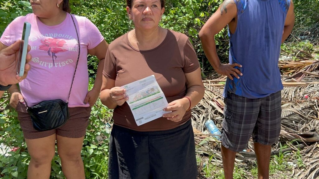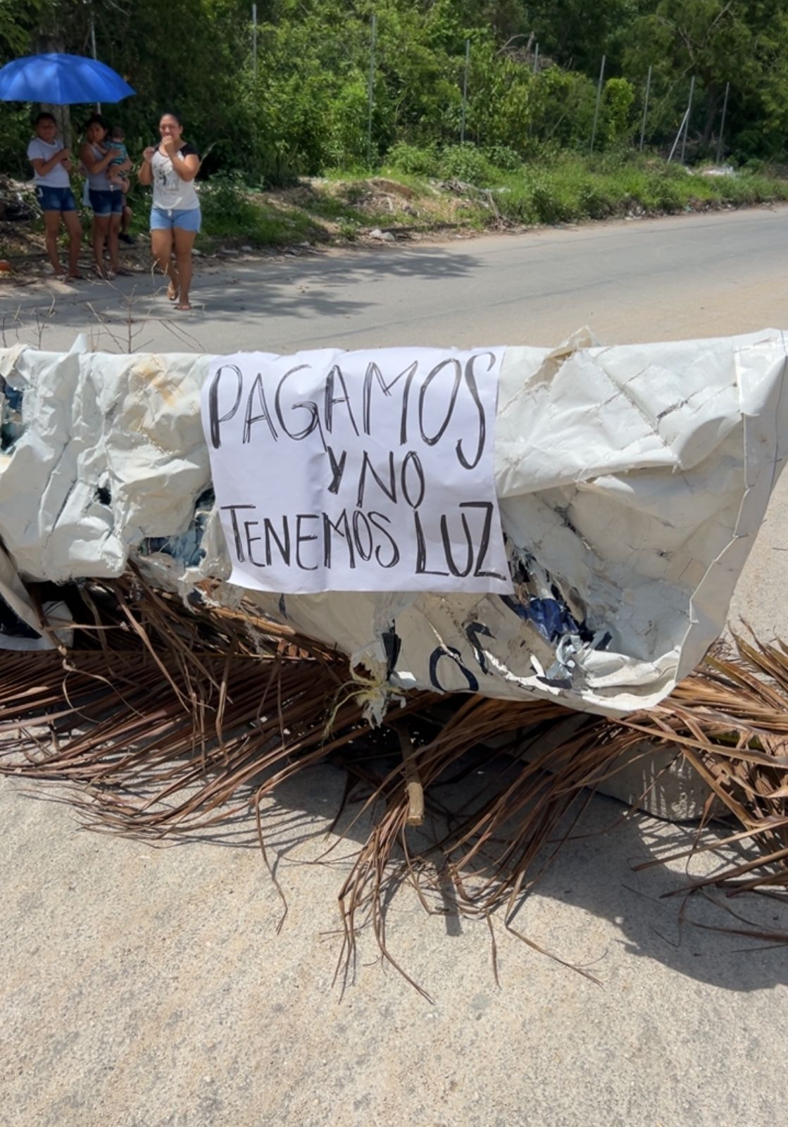 Con piedras y palos, los vecinos iniciaron este bloqueo a la altura de la calle Bahía de Plenity, para después tender un lazo en donde colocaron sus recibos de pago de la CFE.