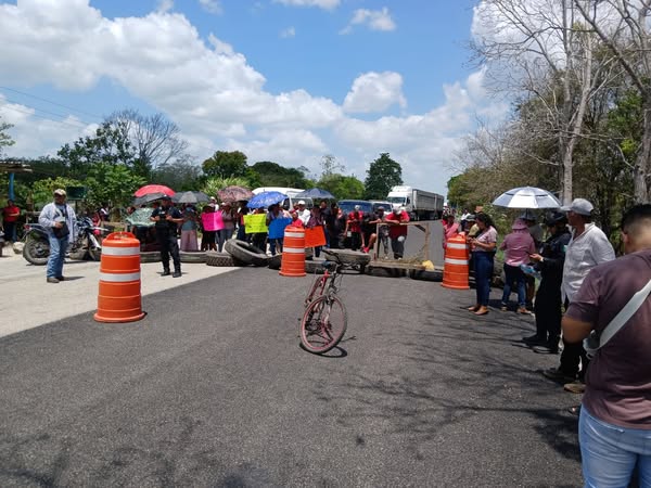 Un grupo de ejidatarios y ciudadanos de Francisco Villa bloqueó la carretera Chetumal-Escárcega debido al mal servicio de la Comisión Federal de Electricidad (CFE). Desde las 09:00 horas, los manifestantes colocaron piedras, troncos y estructuras metálicas para impedir el paso de vehículos. La situación se intensificó tras un accidente en el que una mujer sufrió quemaduras de segundo grado por la caída de cables eléctricos. Los ejidatarios exigen reparaciones inmediatas del tendido eléctrico, argumentando que la CFE ha ignorado sus solicitudes. Este bloqueo ha generado largas filas de vehículos en ambas direcciones, afectando a numerosos conductores.