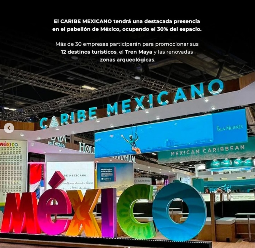 A través de sus redes sociales, la Secretaría de Turismo de Quintana Roo (Sedetur), cuyo titular es Bernardo Cueto Riestra, informó que en la Fitur, “el Caribe Mexicano tendrá una destacada presencia en el pabellón de México, ocupando el 30% del espacio. Más de 30 empresas participarán para promocionar sus 12 destinos turísticos, el Tren Maya y las renovadas zonas arqueológicas”, como la del Meco e Ichkabal.