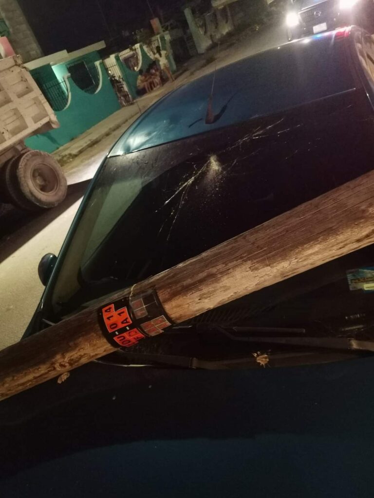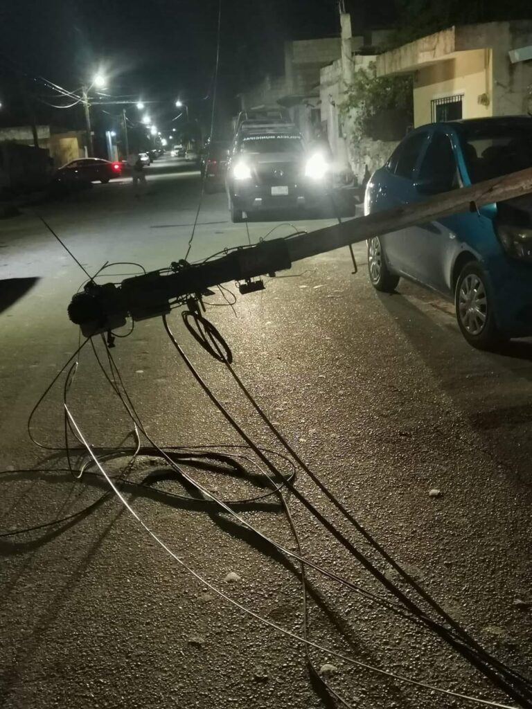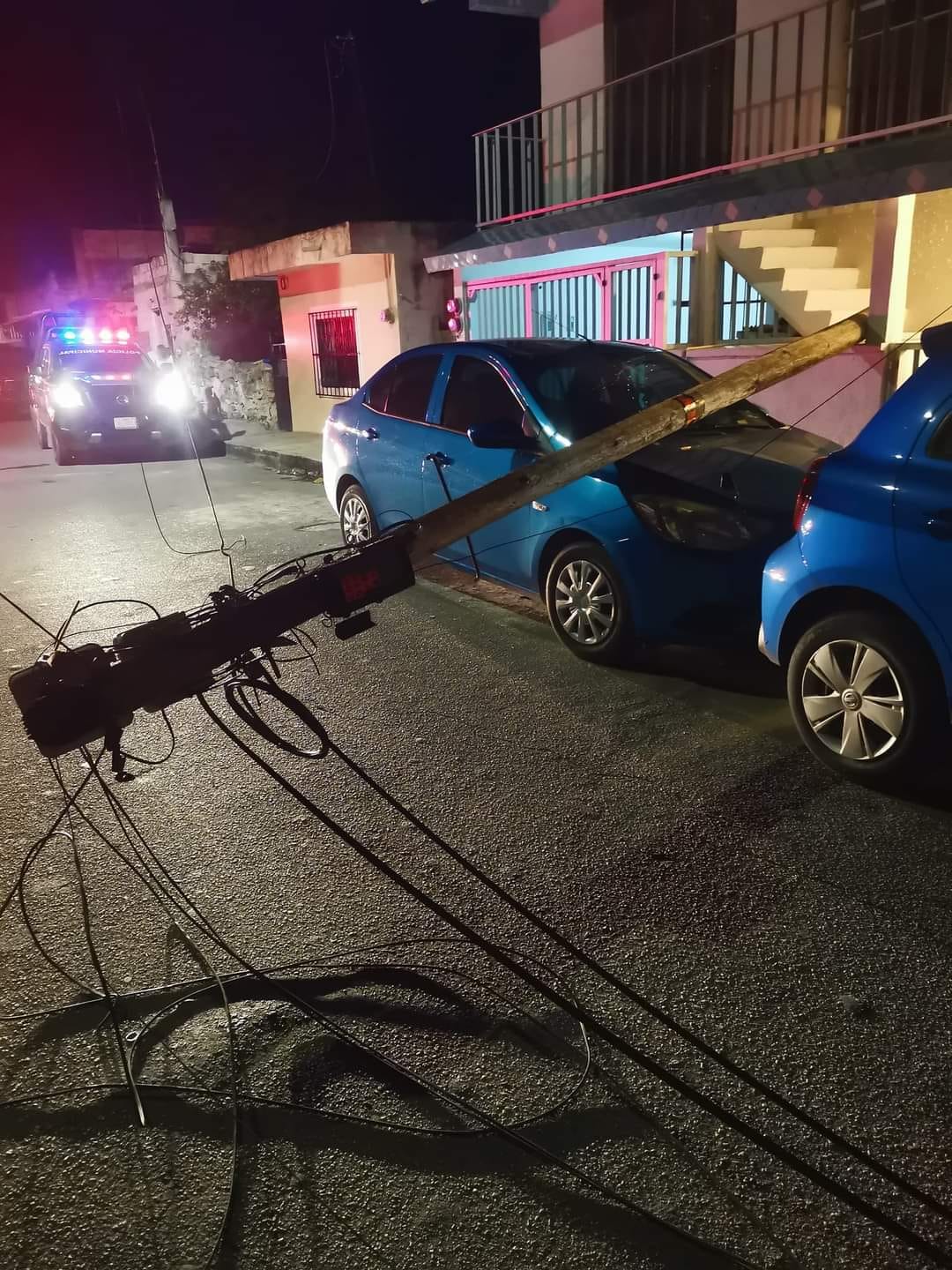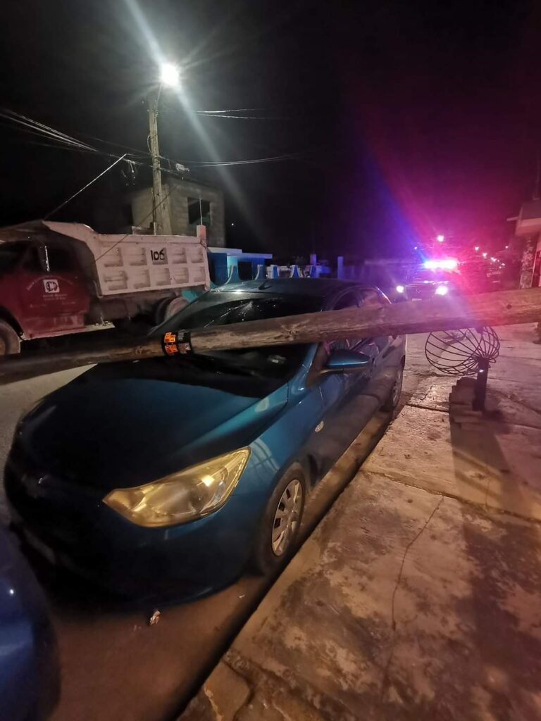 Cozumel.- Un poste de madera de la empresa de telefonía Telmex cayó la noche de ayer sobre un automóvil particular estacionado en la calle 50 entre la calle 2 y 4 de la colonia “10 de Abril”.