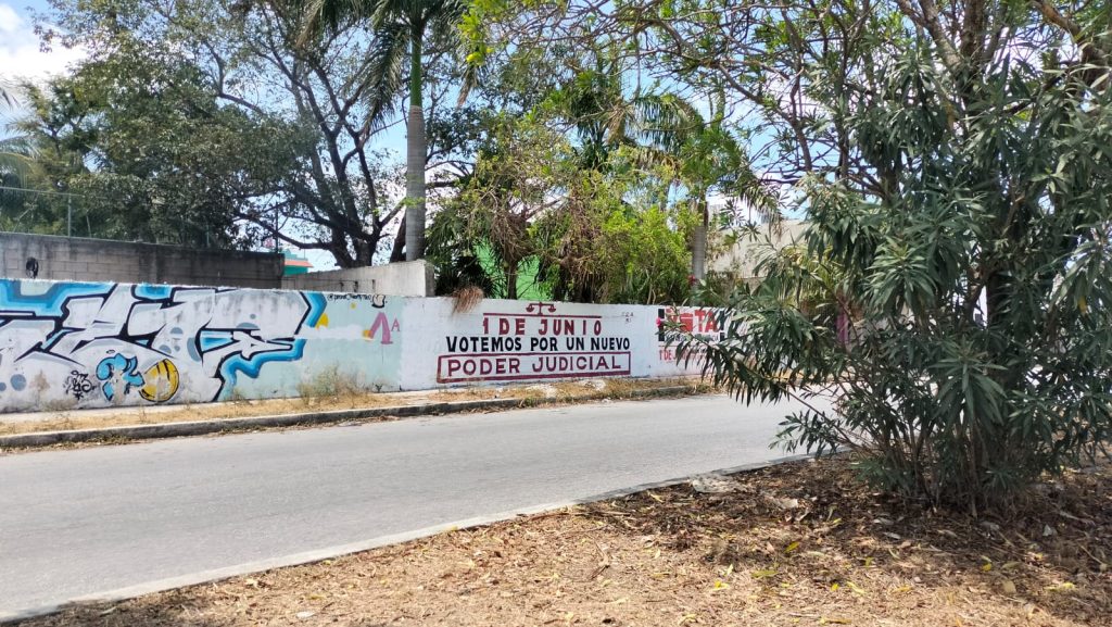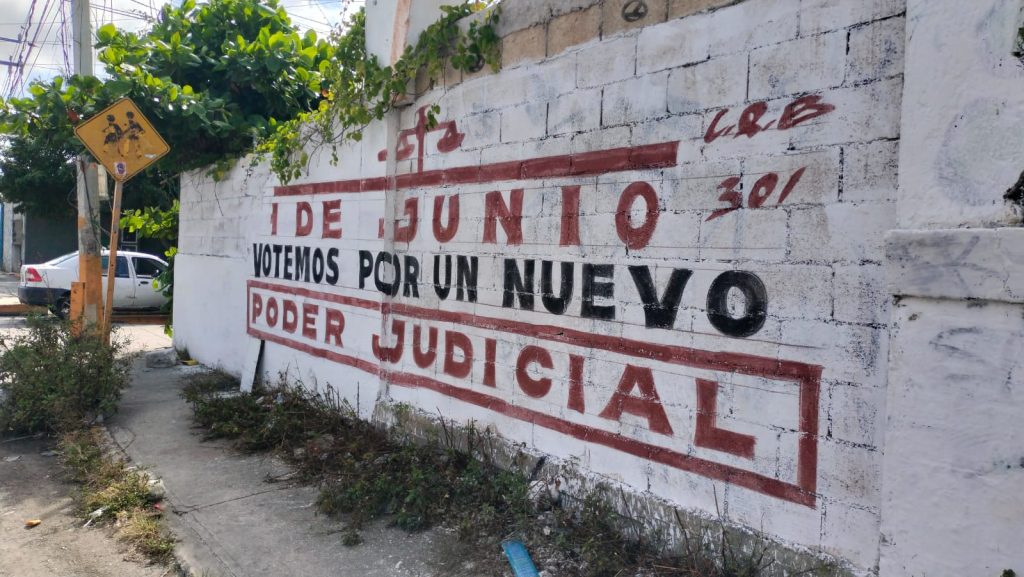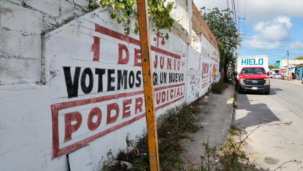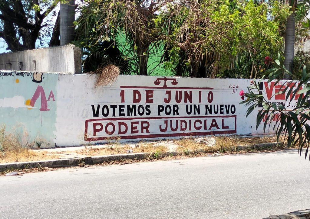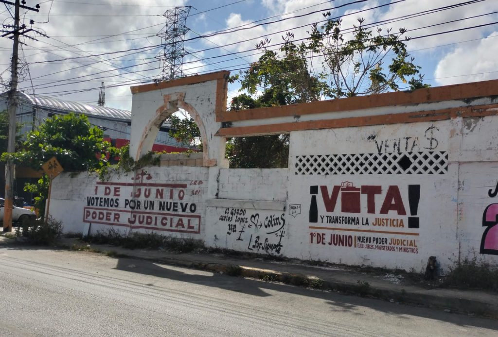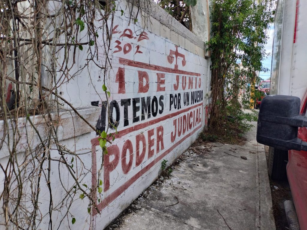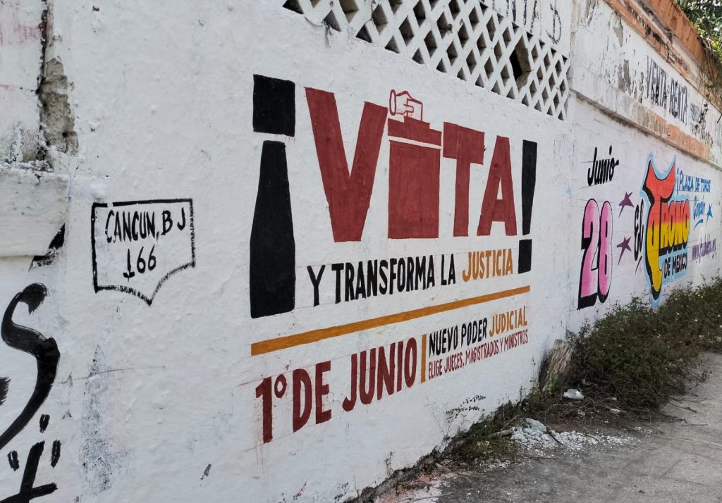 Muros en Cancún promueven elección del Poder Judicial con propaganda ‘guinda’
