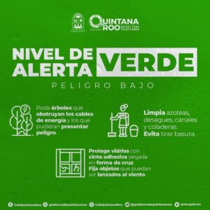 De acuerdo al comunicado de esta instancia estatal, la Alerta Verde aplica para los municipios de Benito Juárez, Isla Mujeres, Lázaro Cárdenas, Cozumel y Puerto Morelos.