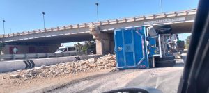 Volcadura de volquete en la vía Cancún-Puerto Morelos