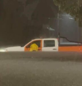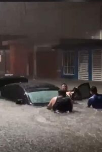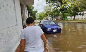 Alrededor de las 9 de la noche, las lluvias comenzaron a caer en la ciudad, dejando rápidamente las calles anegadas, incluso algunos vehículos fueron cubiertos por el agua, que también comenzó a inundar las viviendas.