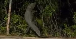 Un video que circula en redes sociales muestra a un enorme cocodrilo intentando regresar a su hábitat natural, la zona de mangle, mientras se encuentra atrapado por una malla de alambre que interfiere en su paso.