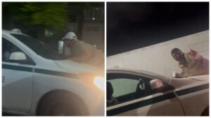 En las imágenes se puede ver al chofer del Nissan Versa con número económico 5295 llevando a una persona en la parte frontal del auto por al menos un kilómetro, desde los juzgados orales hasta poco antes de llegar a la Gran Plaza.