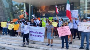 Los inconformes portaron pancartas en inglés y español, donde se leía “Juez imparcial de carrera judicial”, “Defendiendo la democracia” y “justicia independiente, derecho de la gente”, entre otras cosas.