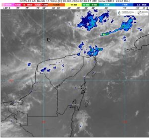 Por la mañana el ambiente será fresco y viento de componente norte con rachas de 40 a 60 km/h y oleaje de 1 a 3 m de altura en las costas de Yucatán y Quintana Roo, durante la mañana. Ambiente cálido durante la tarde.