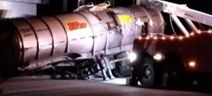 Este accidente, que ocurrió a eso de las 10 de la noche, al parecer se suscitó porque las llantas de la pipa se quedaron estancadas en uno hoyanco que se abrió por el reblandecimiento del asfalto provocado por las inundaciones.