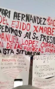 Fue a eso de las 5:30 de la mañana cuando los ejidatarios colocaron piedras, pancartas y mantas en la mencionada carretera, asegurando que no se moverán de este sitio hasta que alguna autoridad federal acuda a escucharlos y destituya a Demetrio Ek Chac, actual comisariado.