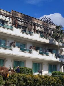 El fuego consumió parte del techo de una terraza construida con materiales de la región, causando alarma entre los huéspedes, quienes rápidamente compartieron videos del siniestro en redes sociales.