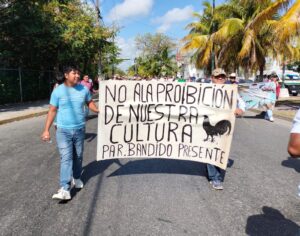 Marchan galleros en Cancún; denuncian daño a su economía por prohibición de peleas
