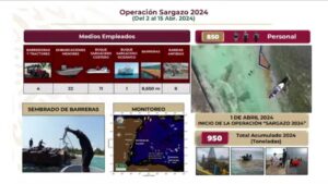 Instalan 8 mil 600 metros de barreras antisargazo en las costas de Quintana Roo