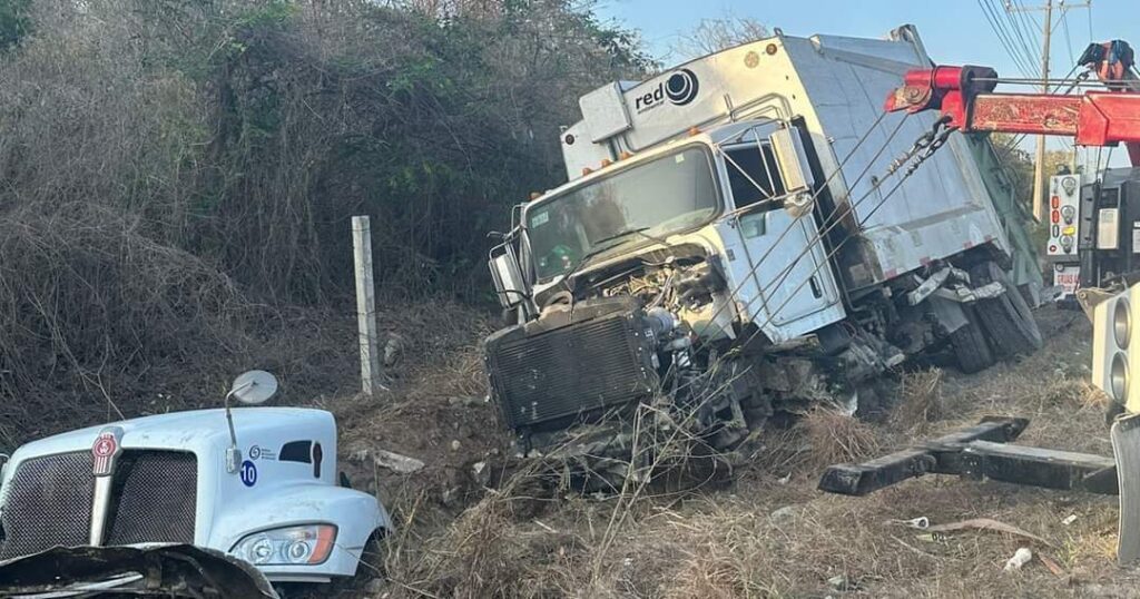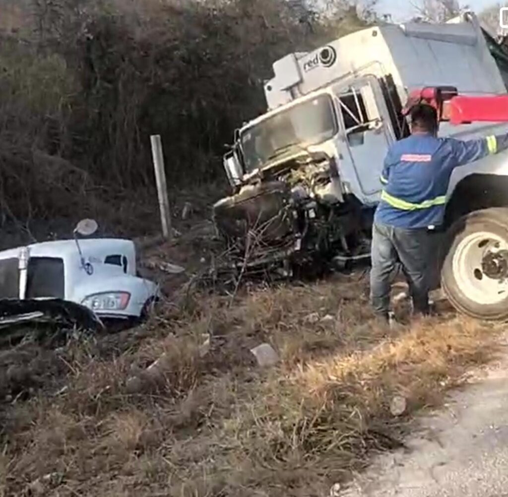 El camión de la empresa Red Ambiental, que opera para el municipio de Tulum, terminó con el frente desprendido, y otras afectaciones en su carrocería.