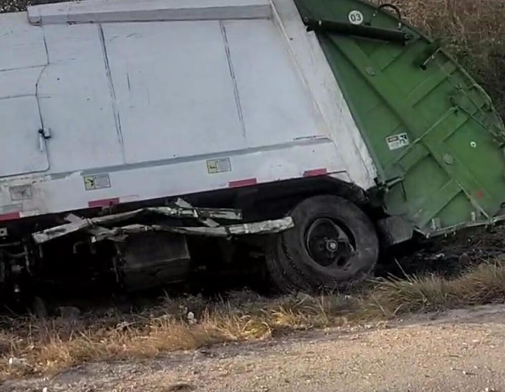 Tulum.- Un camión recolector de basura terminó volcado a un lado de la carretera 307, en el tramo Playa del Carmen-Tulum, luego que su conductor perdiera el control al dormitarse al volante, la mañana de hoy martes.