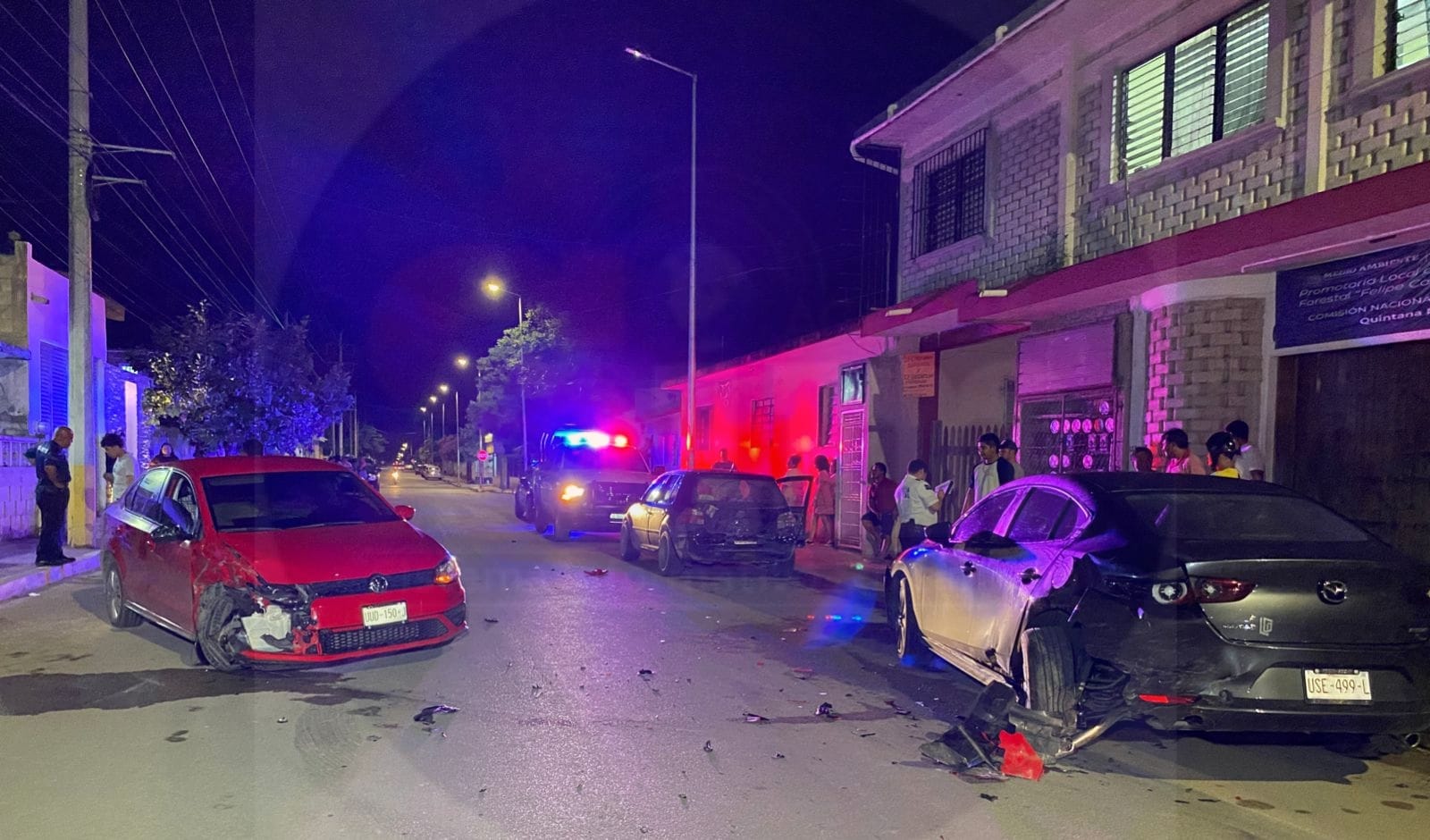 Felipe Carrillo Puerto.- La noche de ayer un hombre, que al parecer conducía en estado de ebriedad, chocó con dos automóviles estacionados en la calle 61 con los cruces de la calle 68 y la avenida Benito Juárez en esta ciudad. No hubo lesionados, solo daños materiales.