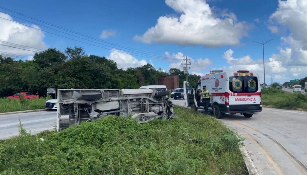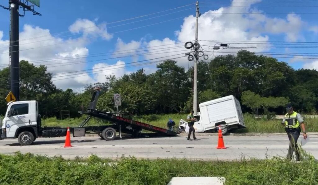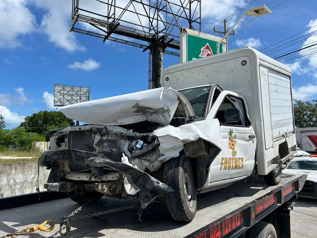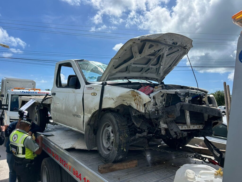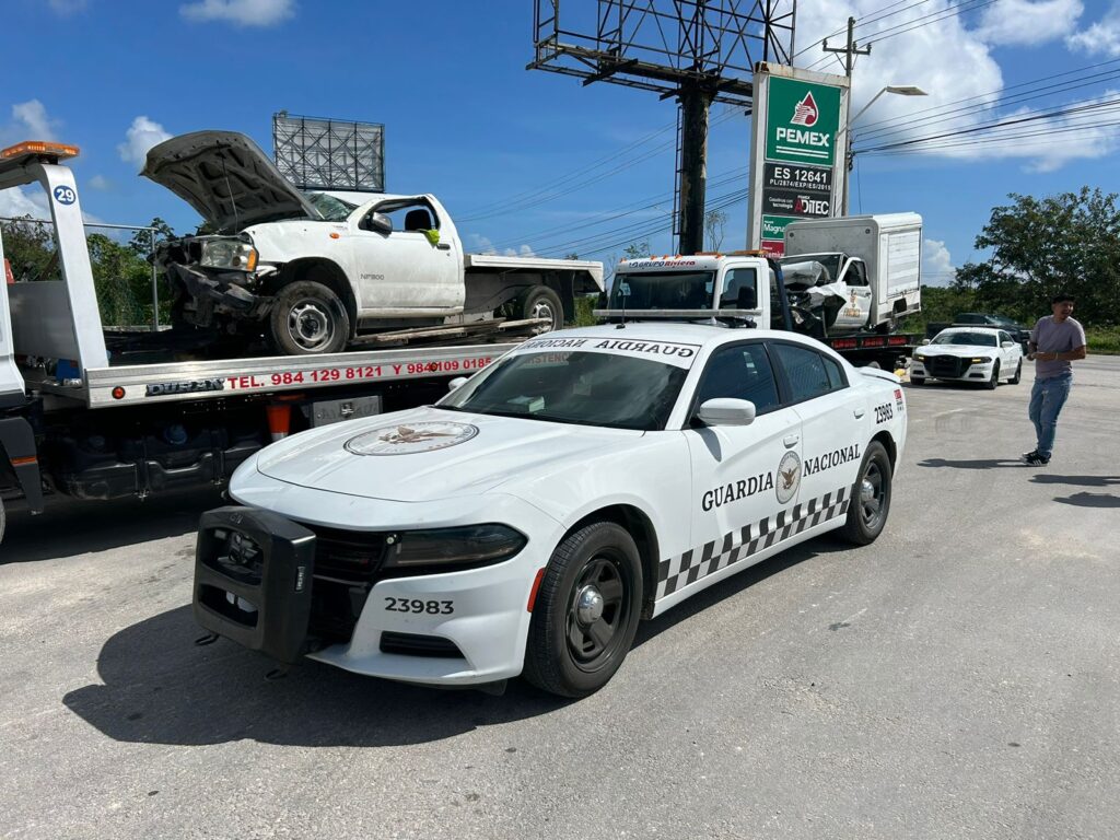 Choque entre camionetas deja dos lesionados graves en el acceso a Playa del Carmen