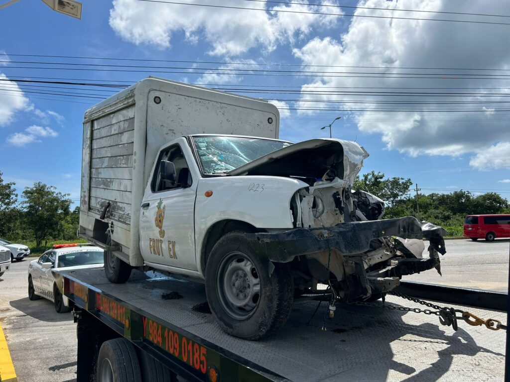 Playa del Carmen.- Dos hombres resultaron severamente lesionados, luego que dos camionetas, una de ellas de la empresa Frutmex, chocaran esta mañana en el acceso a Playa del Carmen, a la altura del kilómetro 312 de la carretera federal 307.