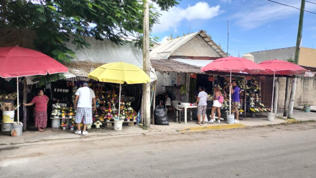 Cancún.- A pocos más de 15 días de la celebración del Día de Muertos, ya se observan personas visitando a sus familiares en los panteones de la ciudad, donde los vendedores de flores ya se encuentran instalados.