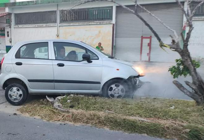 La conductora y su acompañante resultaron ilesos, sin embargo, el automóvil sufrió daños en la parte delantera al impactarse con la guarnición del camellón.