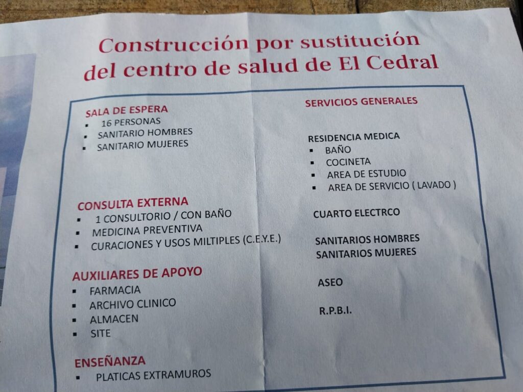 El subdelegado comentó que esta obra, que se construye en un predio donado por el ejido, será de gran ayuda para la población ya que el personal de la casa de salud solo trabaja hasta las 2 de la tarde y los fines de semana se mantiene cerrada, lo que es un gran problema para las familias que requieren de una vista médica.