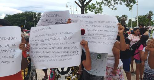 Aproximadamente 100 manifestantes se congregaron frente al Palacio de Gobierno de Chetumal para exigir la intervención de la gobernadora María Elena “Mara” Lezama Espinosa y de la Comisión Nacional de Derechos Humanos. Acusan al teniente Víctor Manuel Mendoza Gregorio y a sus subordinados de cometer una serie de abusos, incluyendo entrar a domicilios sin orden de cateo, robar pertenencias de las familias y amenazar con armas de fuego a quienes se resisten.