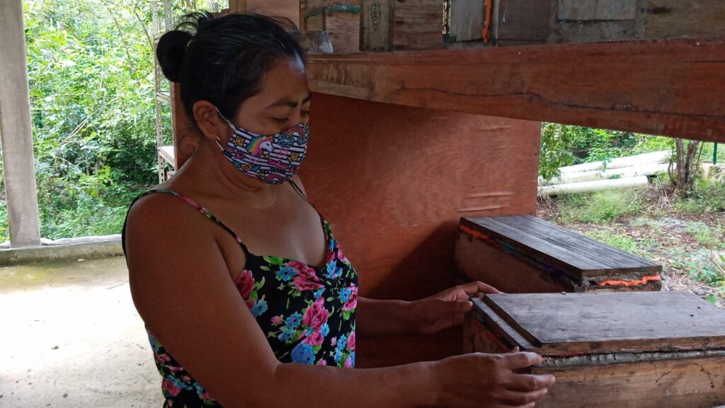 Arely Castillo Perera, presidenta de dicha agrupación, indicó que son ocho mujeres que trabajan en este proyecto, quienes cuentan con más de 50 colmenas, conocidas como “jabones”, que son las cajas de madera en donde las abejas meliponas, sin aguijón, elaboran la miel.