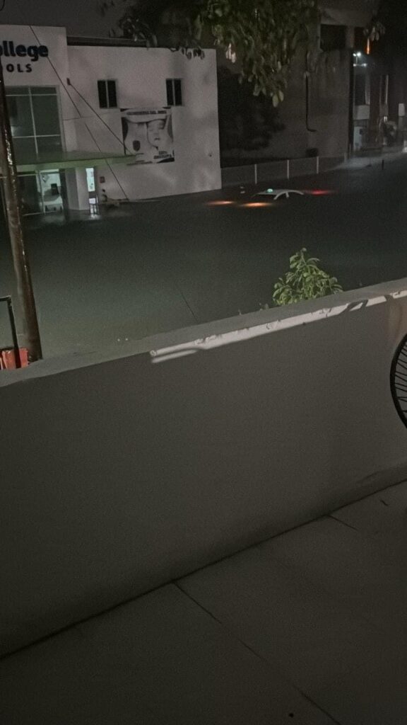 Alrededor de las 9 de la noche, las lluvias comenzaron a caer en la ciudad, dejando rápidamente las calles anegadas, incluso algunos vehículos fueron cubiertos por el agua, que también comenzó a inundar las viviendas.