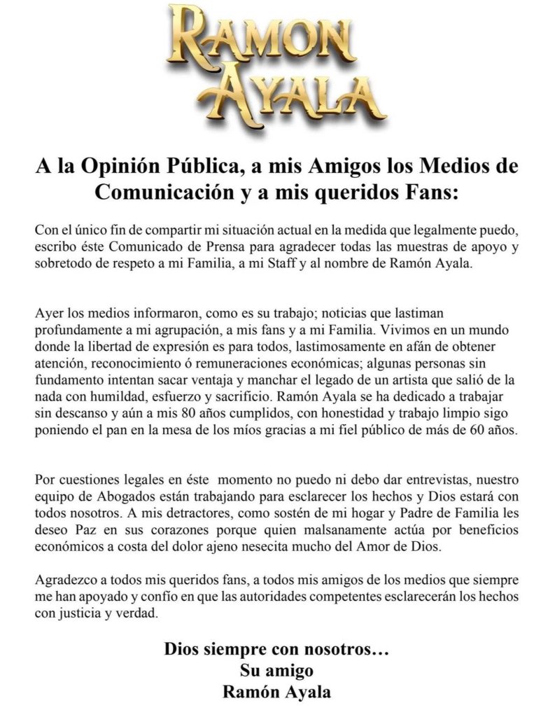 Mediante un comunicado compartido en sus plataformas digitales, el legendario intérprete de 80 años manifestó que las noticias recientes lastiman profundamente a su familia y a su trayectoria de seis décadas. El músico regiomontano enfatizó que, en la búsqueda de remuneraciones financieras o notoriedad, ciertas personas intentan dañar su legado construido con base en el esfuerzo y la honestidad. Aunque se abstuvo de brindar entrevistas por recomendación de sus asesores jurídicos, reiteró su confianza plena en que las instituciones correspondientes lograrán esclarecer la verdad con justicia. Por consiguiente, el equipo legal de Ayala ya trabaja en la estrategia para desestimar la querella millonaria, mientras el mundo del espectáculo permanece atento al desarrollo de este proceso judicial en Estados Unidos.