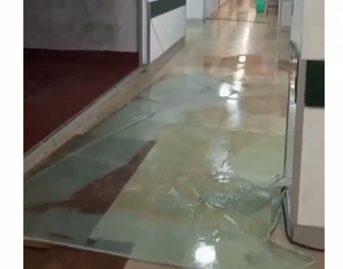 En dicho video, el denunciante muestra los restos de un ventanal roto, cuyos vidrios cubrieron una zona de un pasillo.