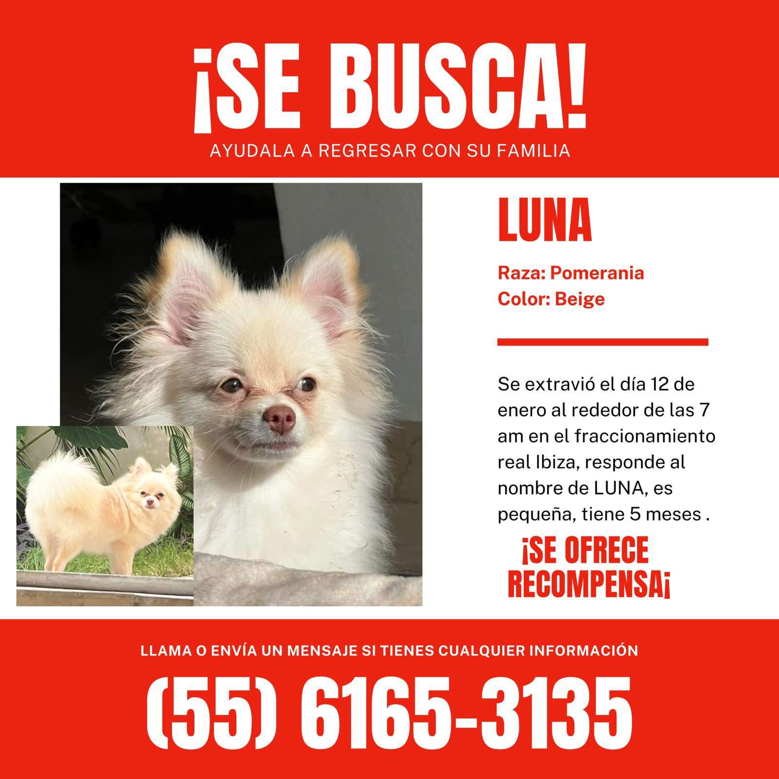Estos propietarios también ofrecen una recompensa por quien pueda devolverles a su mascota, sin cuestionamientos, porque su único interés que “Luna” regrese a su hogar.