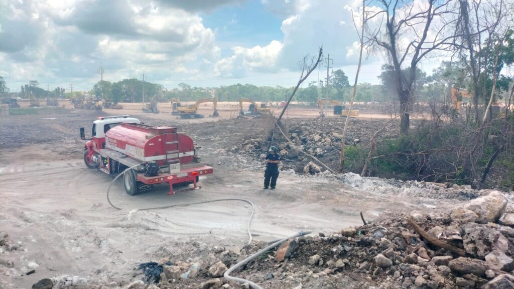 Playa del Carmen.- El incendio ocurrido la madrugada hoy en un predio de la desarrolladora Cadu, entre el fraccionamiento El Edén y Villas del Sol, se debió a la quema de desechos removidos por la maquinaria de desmonte, informó Alejandro Contreras Díaz, director de Bomberos municipal.
