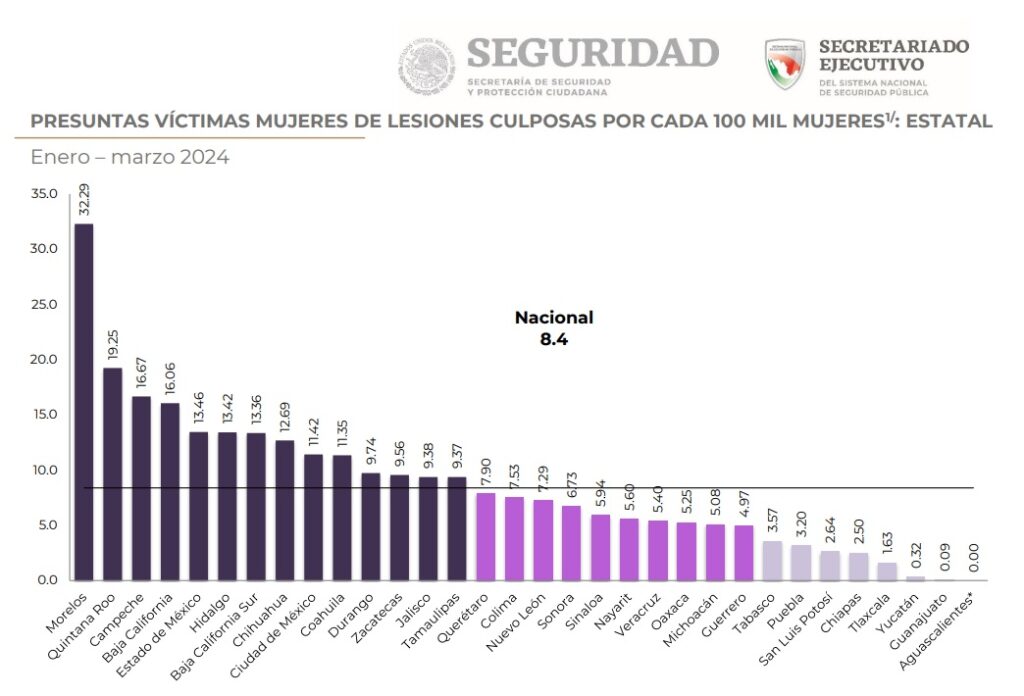 En el delito de homicidio culposo contra mujeres presenta una incidencia de 4.20 homicidios por cada 100 mil mujeres que habitan en el estado.