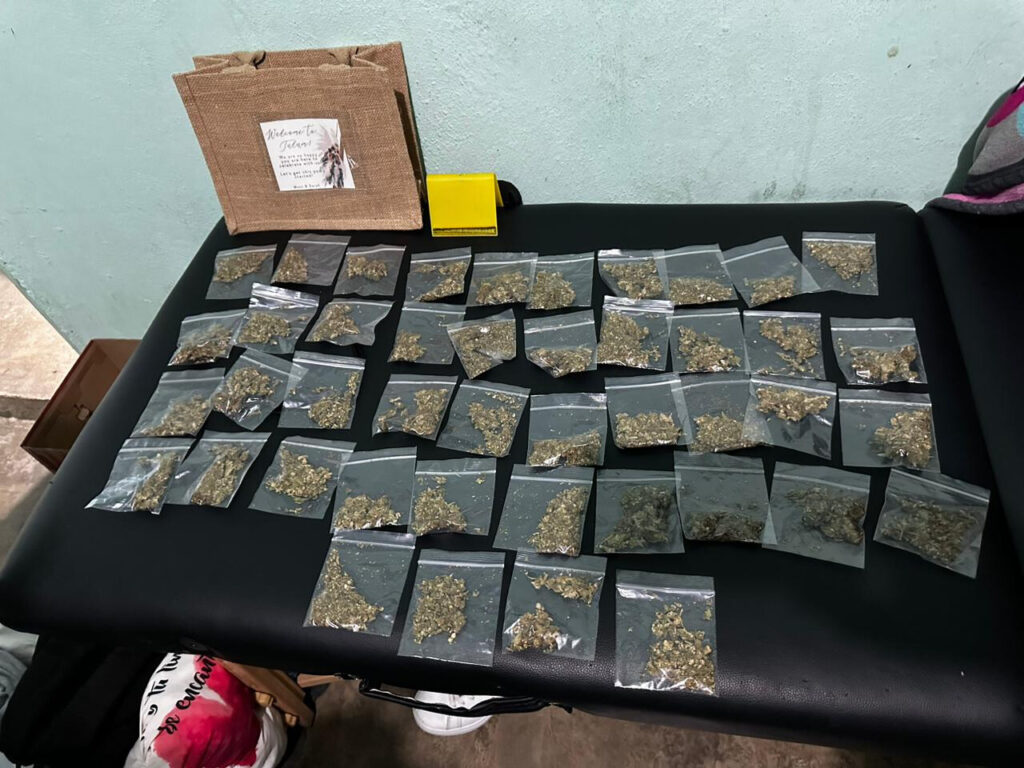 Posteriormente, los agentes se dirigieron a otro domicilio en la calle Gama Oriente entre Orión Sur y Centauro Sur, donde también se decomisaron varias dosis de presunta droga similar a la marihuana y el cristal.