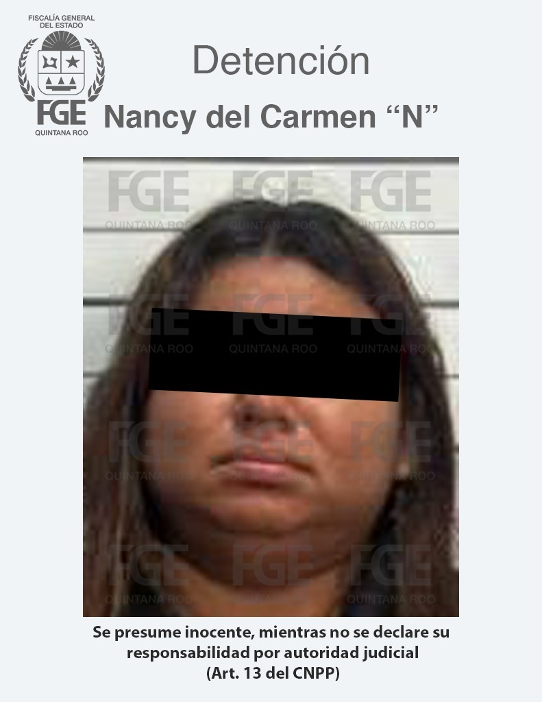 Cancún.- Una mujer, identificada como Nancy del Carmen “N”, fue detenida en esta ciudad con una orden de aprehensión de Tabasco, implicada en el intento de secuestro en el que murió asesinado el menor Dante Emiliano.