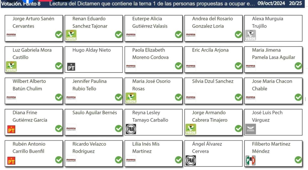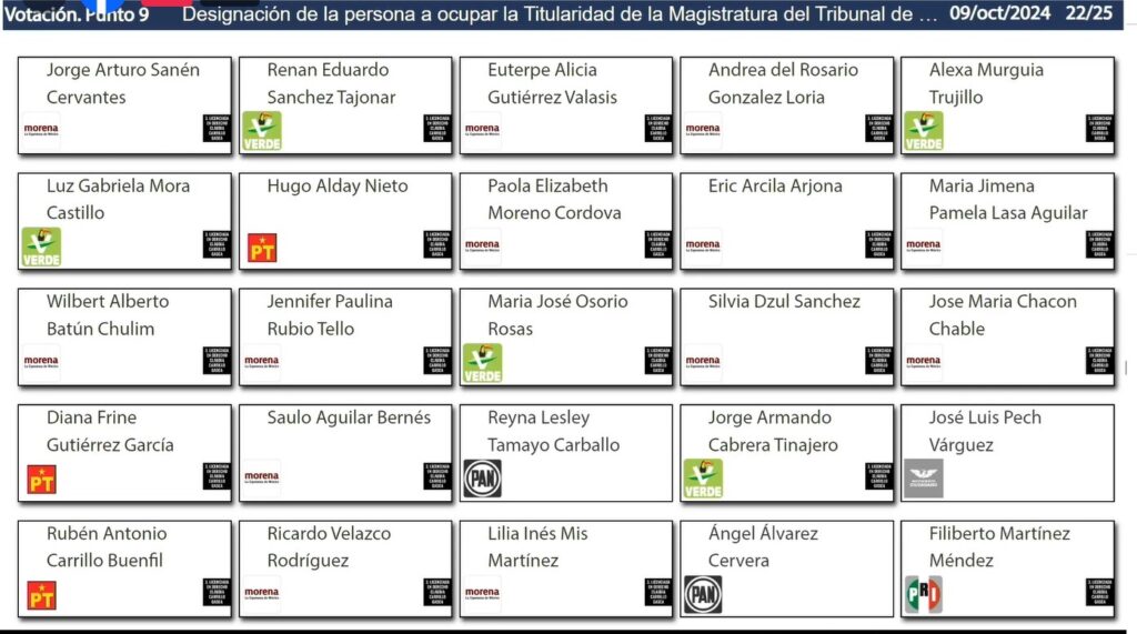 Después de un acalorado debate, el cuarto Magistrado electo fue Minerva Maribel Moreno Cruz; de la terna cinco los legisladores eligieron a Rubí Guadalupe Sulub Cih.