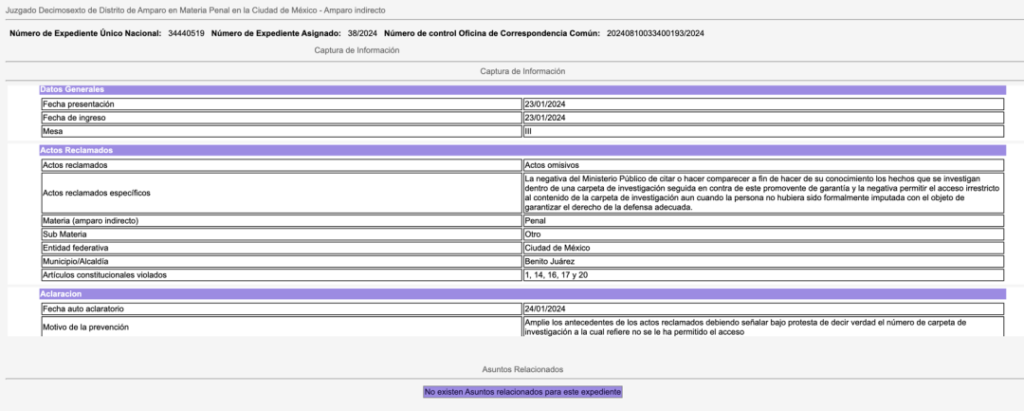 El juicio de amparo promovido por el representante legal de Romedic fue admitido por el Juez Decimosexto de Distrito de Amparo en Materia Penal de la Ciudad de México, José Elías Pacheco Martínez, quien deberá resolver si concede o no el acceso a la investigación a la empresa vinculada al hijo del presidente.