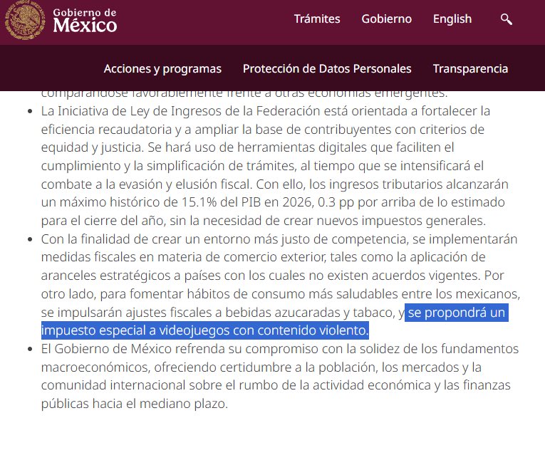 Sobre el impuesto a los videojuegos, la presidenta Sheinbaum indicó que su implementación está relacionada con temas de seguridad. La mandataria aclaró que no se trata de una prohibición. En cambio, su objetivo es fomentar la atención de los padres de familia sobre el tipo de videojuegos que consumen sus hijos, cómo los usan y si son o no un peligro para ellos, sobre todo en la modalidad en línea. Este impuesto es parte de una estrategia más amplia para promover la seguridad cibernética y el uso responsable de las nuevas tecnologías.