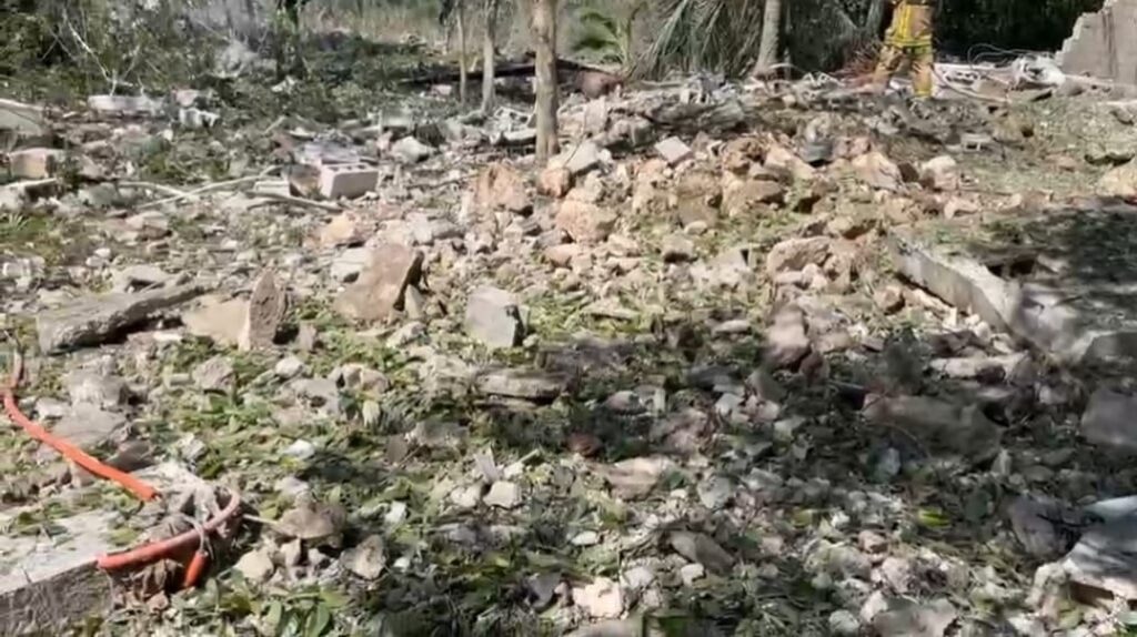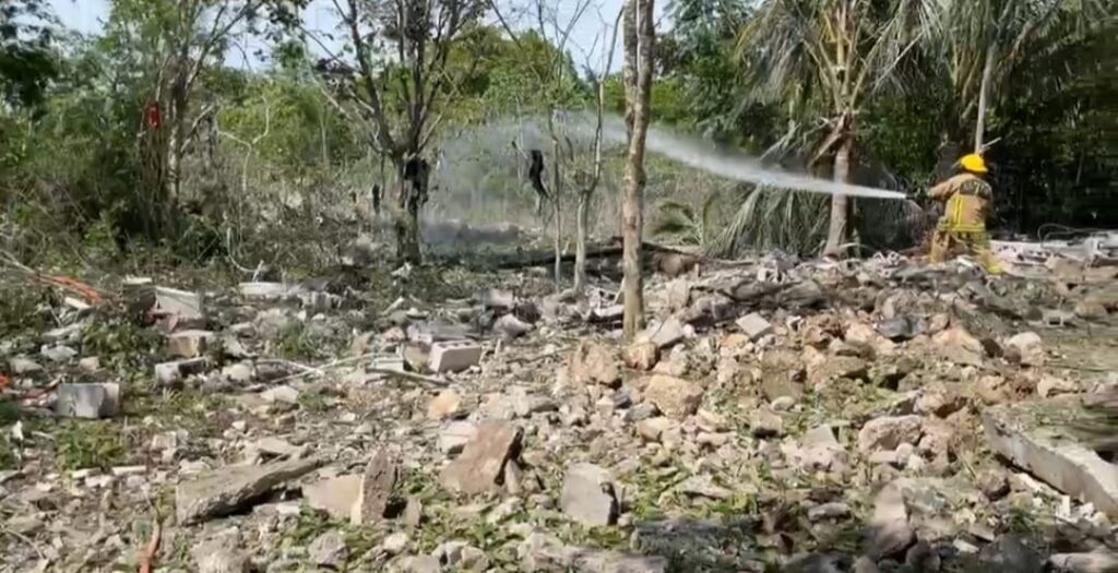 Felipe Carrillo Puerto.- Una bodega de dos niveles, utilizada para insumos de las obras del Tren Maya, quedó reducida a sus cimientos, al generarse una fuerte explosión en su interior, posiblemente por dinamita. El estruendo se escuchó por toda la ciudad.