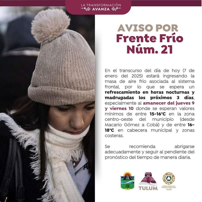 #AgendaQR, #FrenteFrío21, #QuintanaRoo, #BajasTemperaturas, #LluviasFuertes, #Vientos, #ProtecciónCivil, #Clima, #Inundaciones