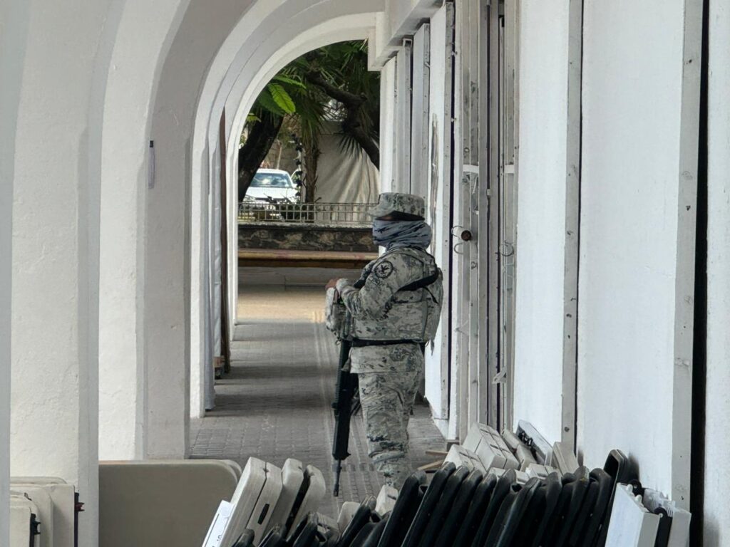 Cancún.- Autoridades de la Guardia Nacional y el Ejército Mexicano arribaron esta mañana al Palacio Municipal, en medio de un dispositivo de seguridad, para sostener una reunión con la presidenta municipal, Ana Paty Peralta de la Peña, previo al anuncio del cambio de mando de la Secretaría de Seguridad Ciudadana de este municipio.